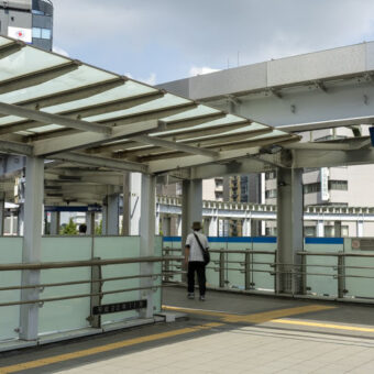 デッキの突き当りを右に曲がると、サークル状の立体歩道橋につながりますので、左ルートに入ります。 -
