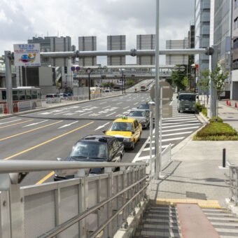 新横浜駅は多くの出口がありますが、ベストなルートとしてはペデストリアンデッキを利用して環状2号線を渡る方が良いでしょう。 -