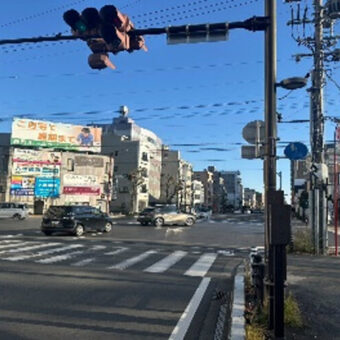 • 静岡駅南口から南口交差点(写真)を石田街道沿いに南へ真っ直ぐ進む。