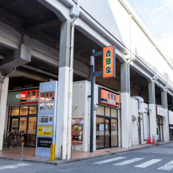 • 高架下を進むと、右手に「吉野家」がある交差点に出ます。ここを右に曲がります。